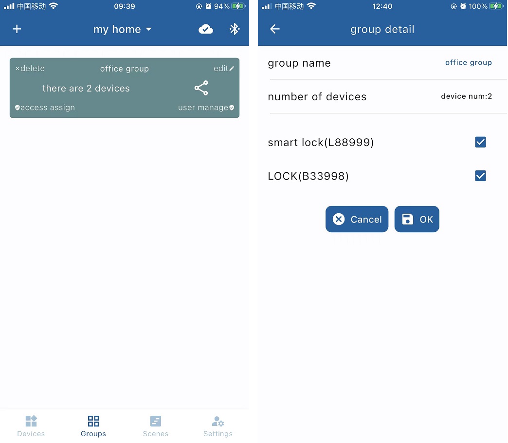 there are two kinds of devices, (1)remote control device which user can send command to device via internet, (2)bluetooth device which user can connect device with ble protocal and control it.