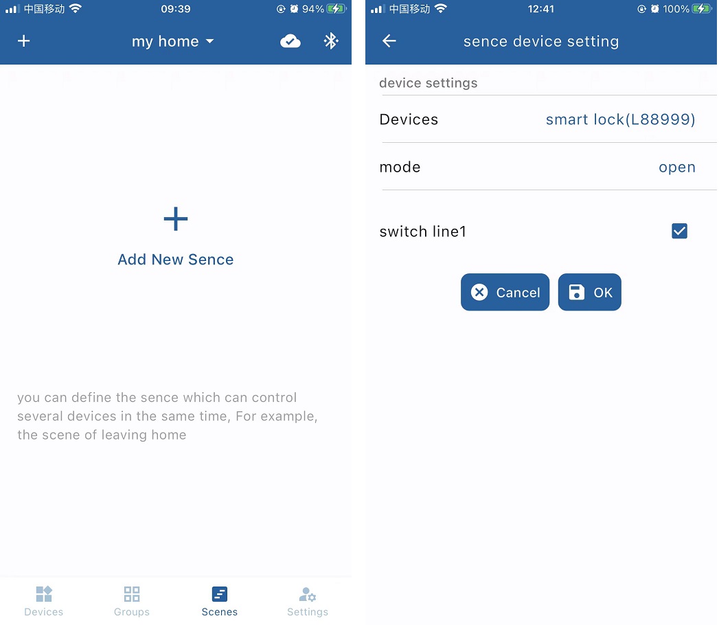 smdevice is an APP for smart devices control and management, user can click the qrcode icon(in the left top conner) button to scan the qrcode of device to add it. user can share the device to other users.